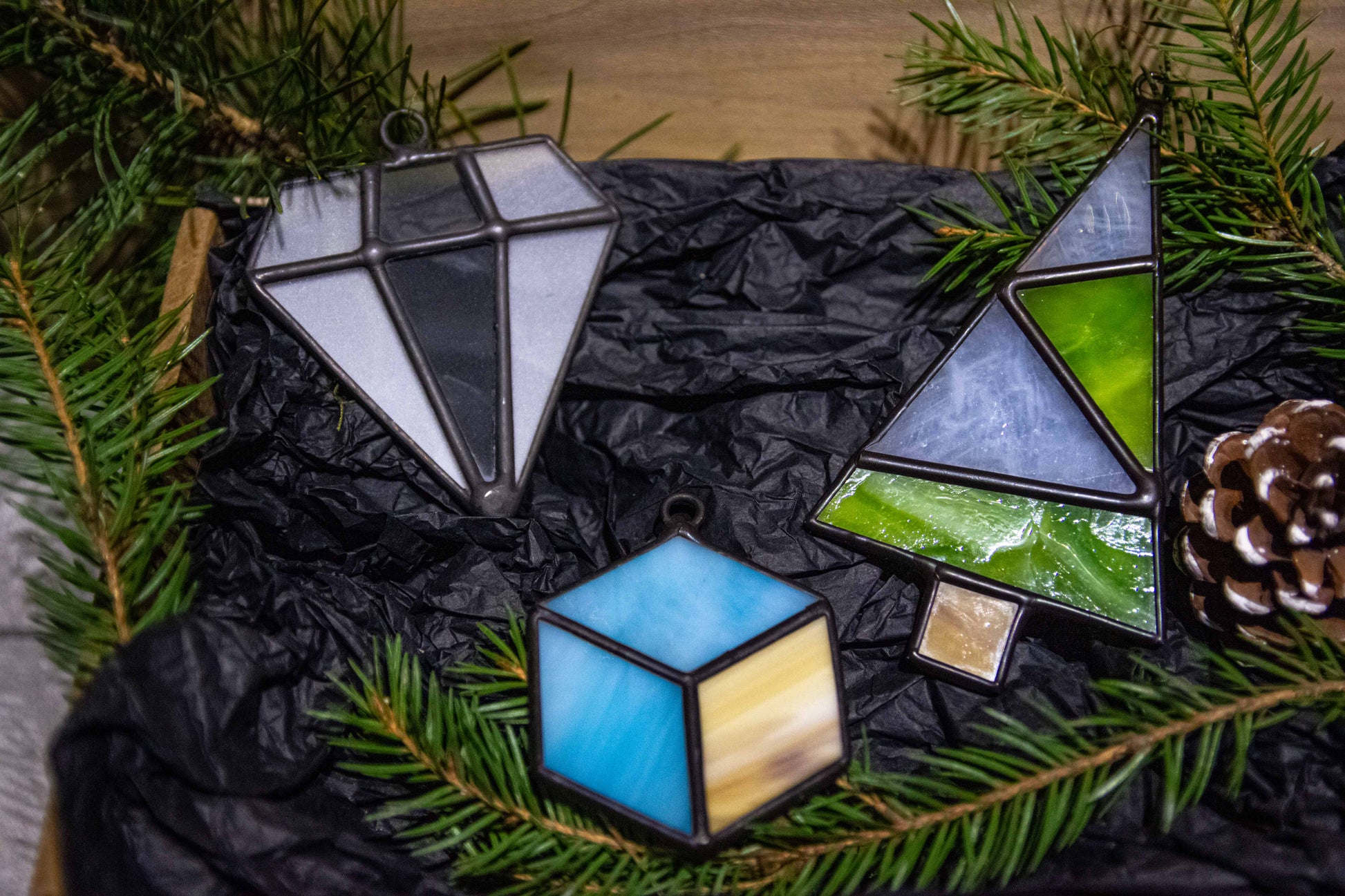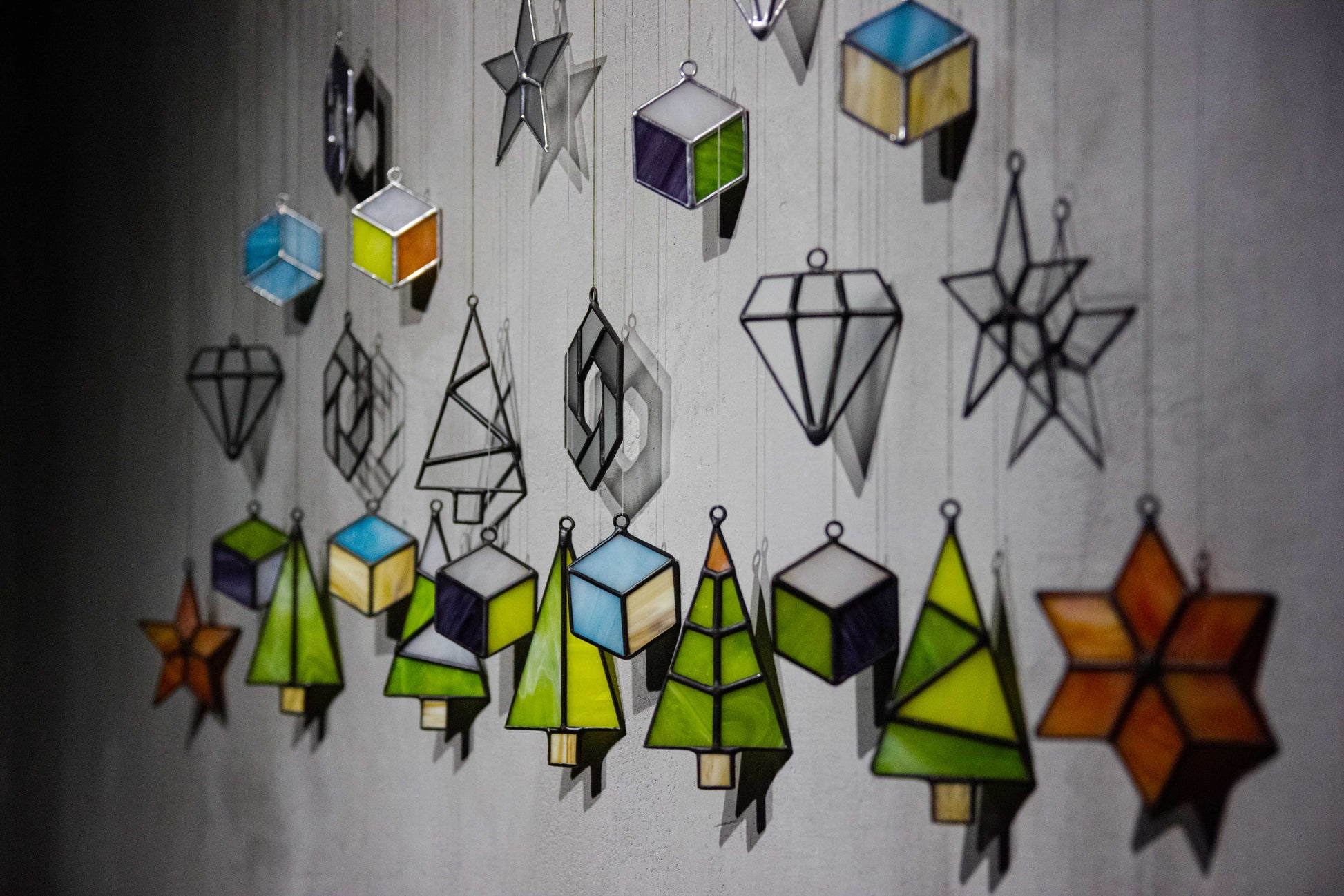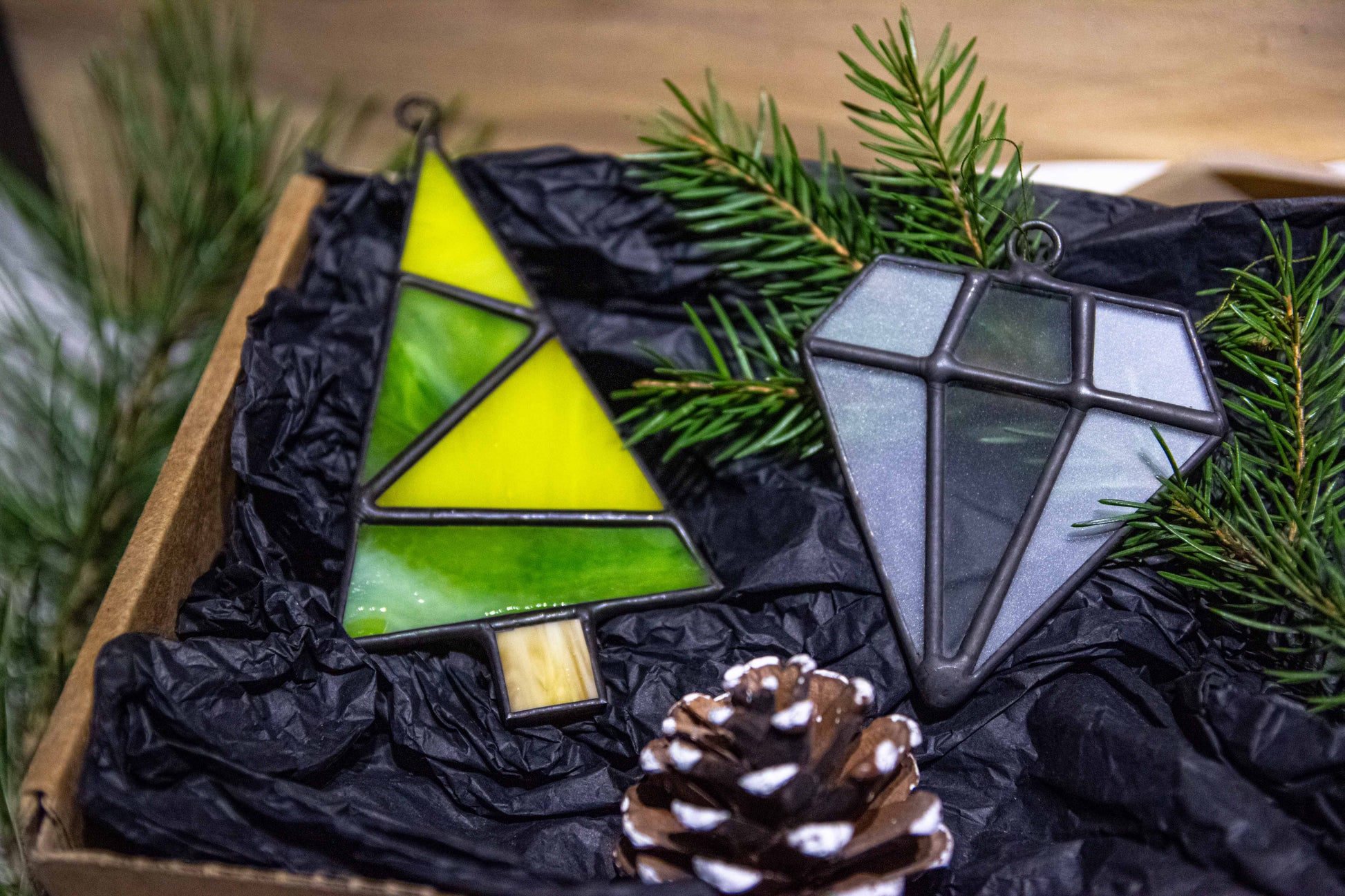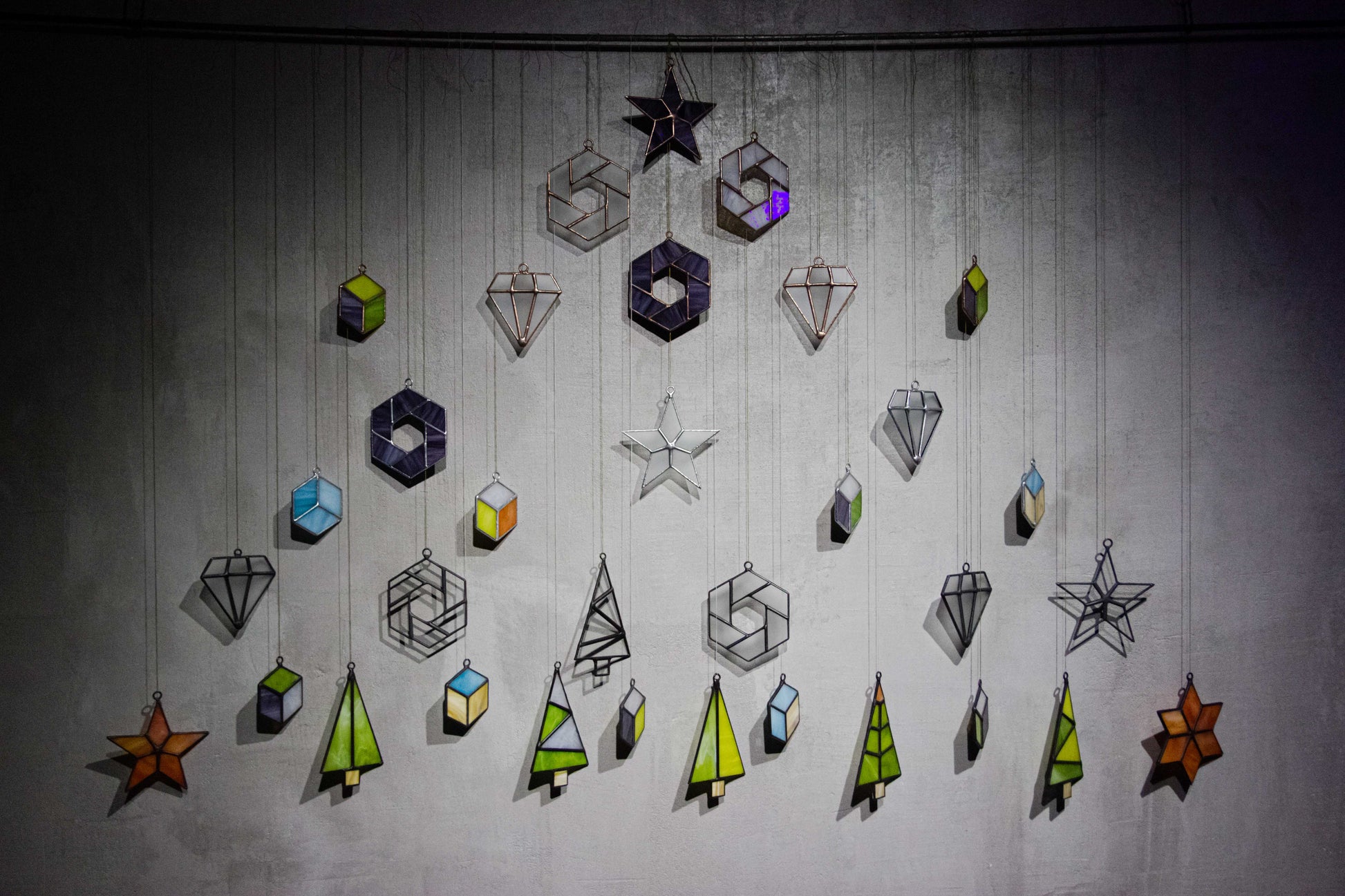 The toys are made using the Tiffany technique using colored, matte and transparent glass. The shapes were not chosen by chance - each carries a special mood.