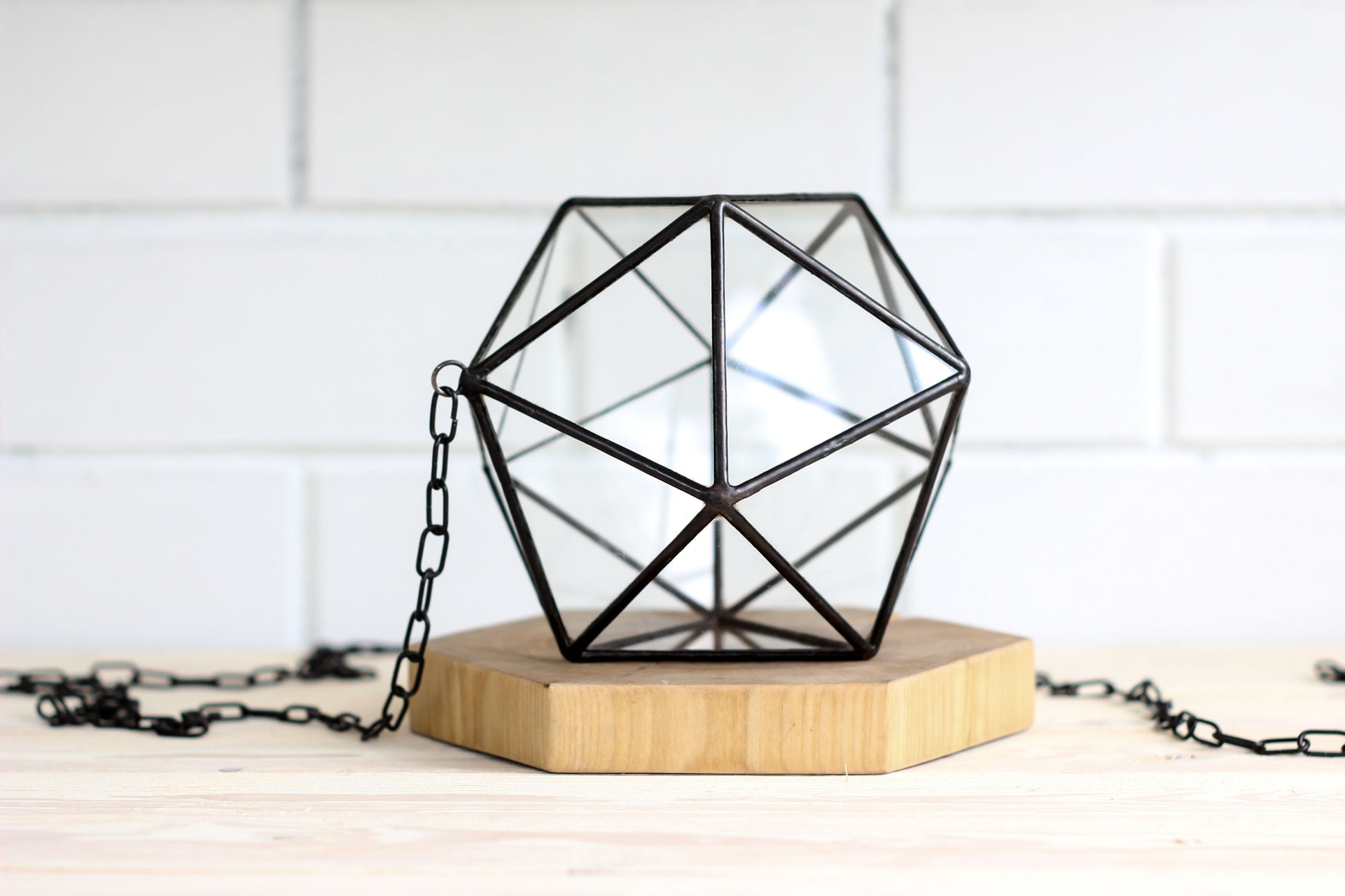 Meet our pendant Icosahedron geometric glass object for indoor succulent and air plants cultivation or wedding decor.
