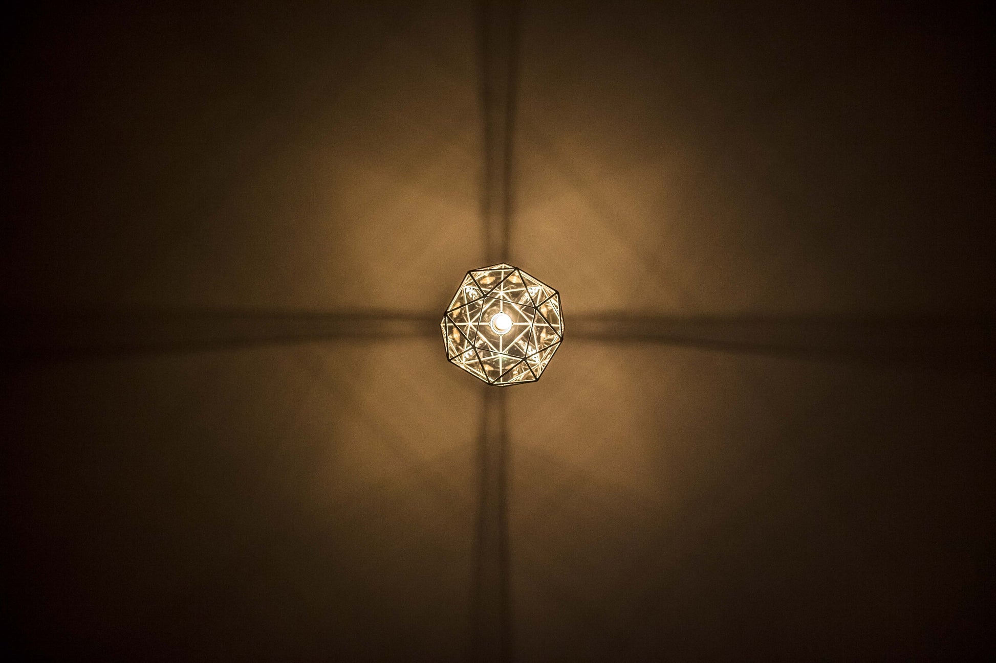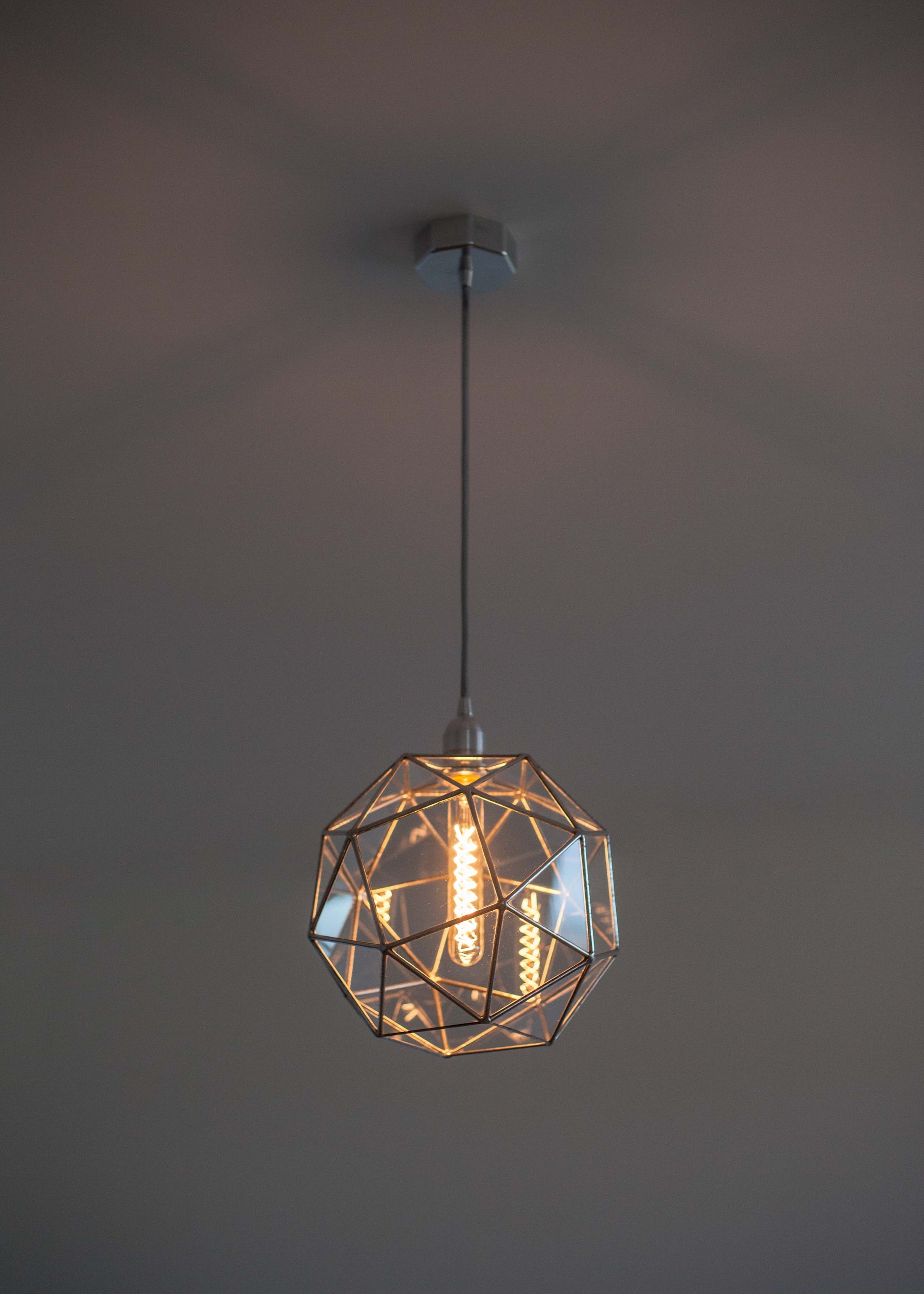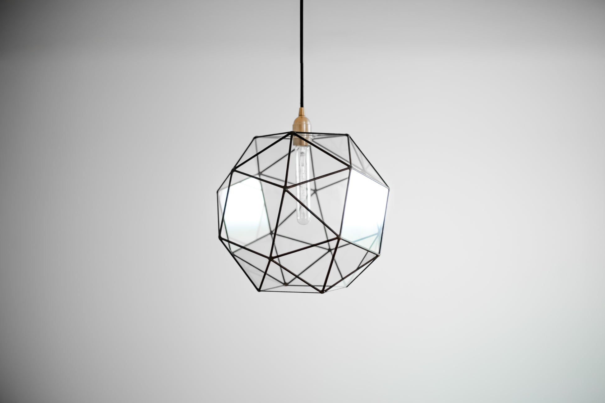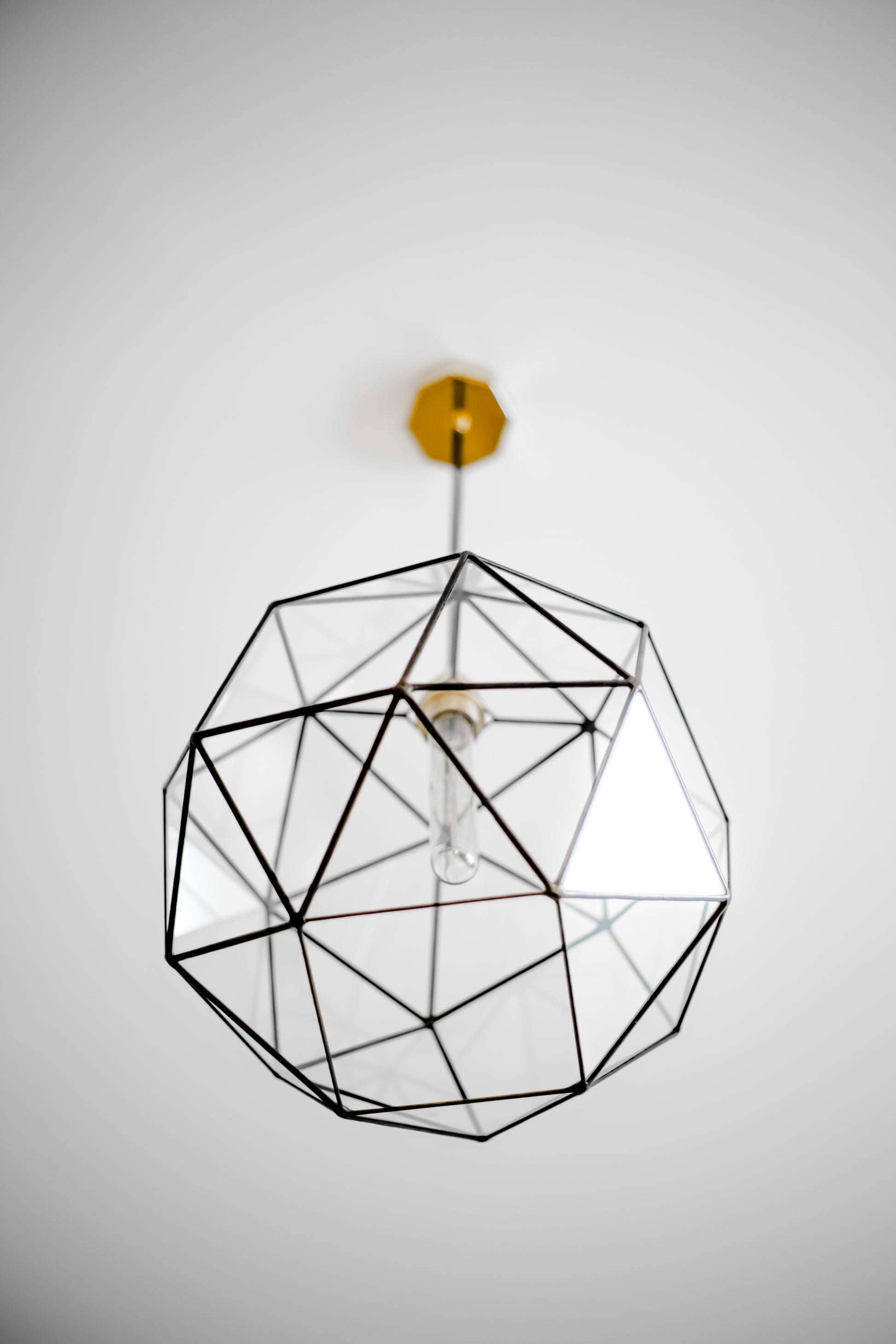 This chandelier looks perfectly at any point of view and brings accurate geometry into the interior, as in the afternoon and also in the evening, when the proceeding light extends solid's geometry to the room, giving rise to a pleasant 3d patterns on the walls.