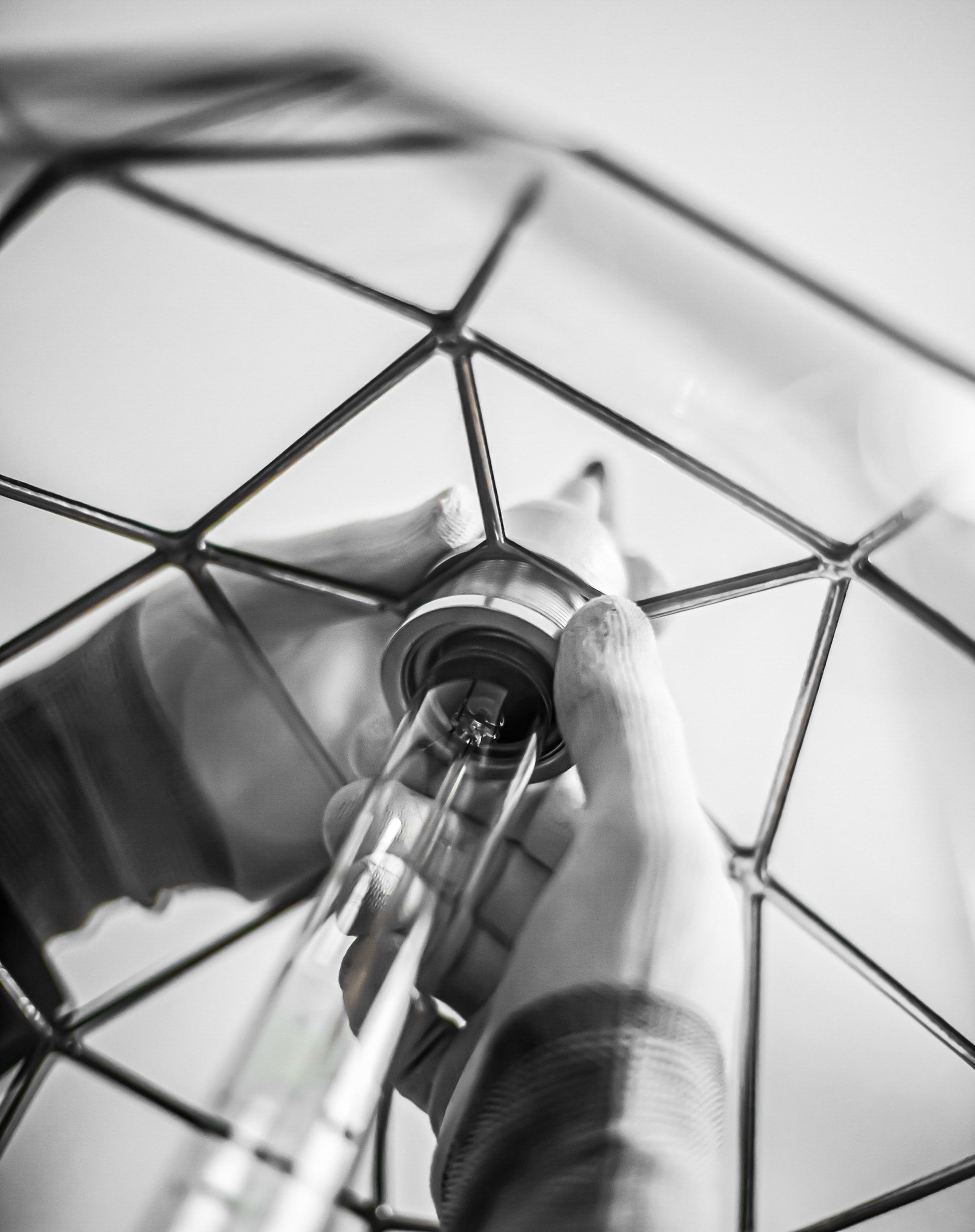 Our chandelier is mounted on a high-quality ceiling fixture which is designed and created in our studio from the highest quality brass and aluminum.