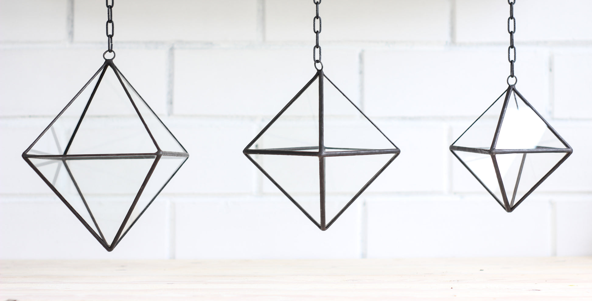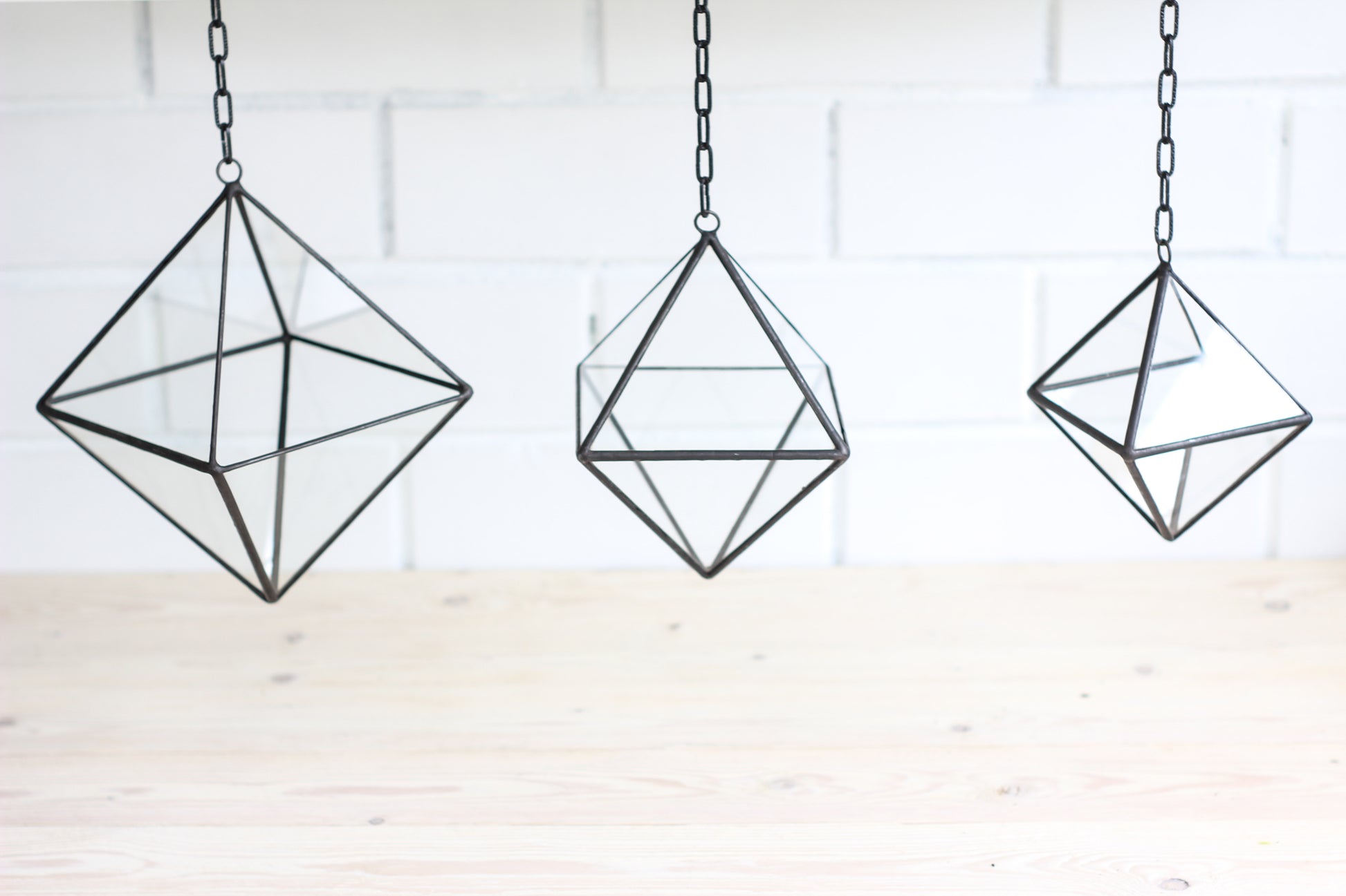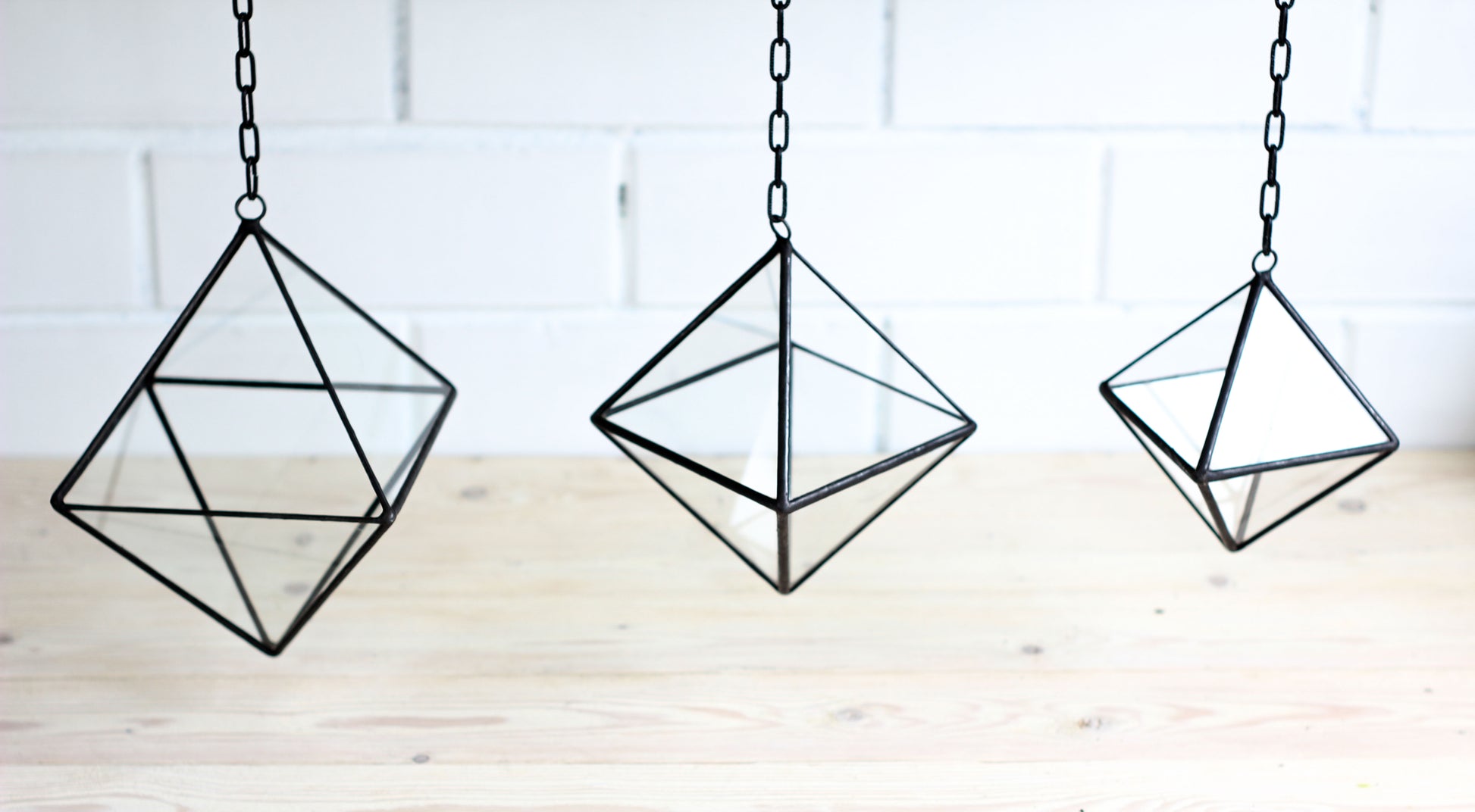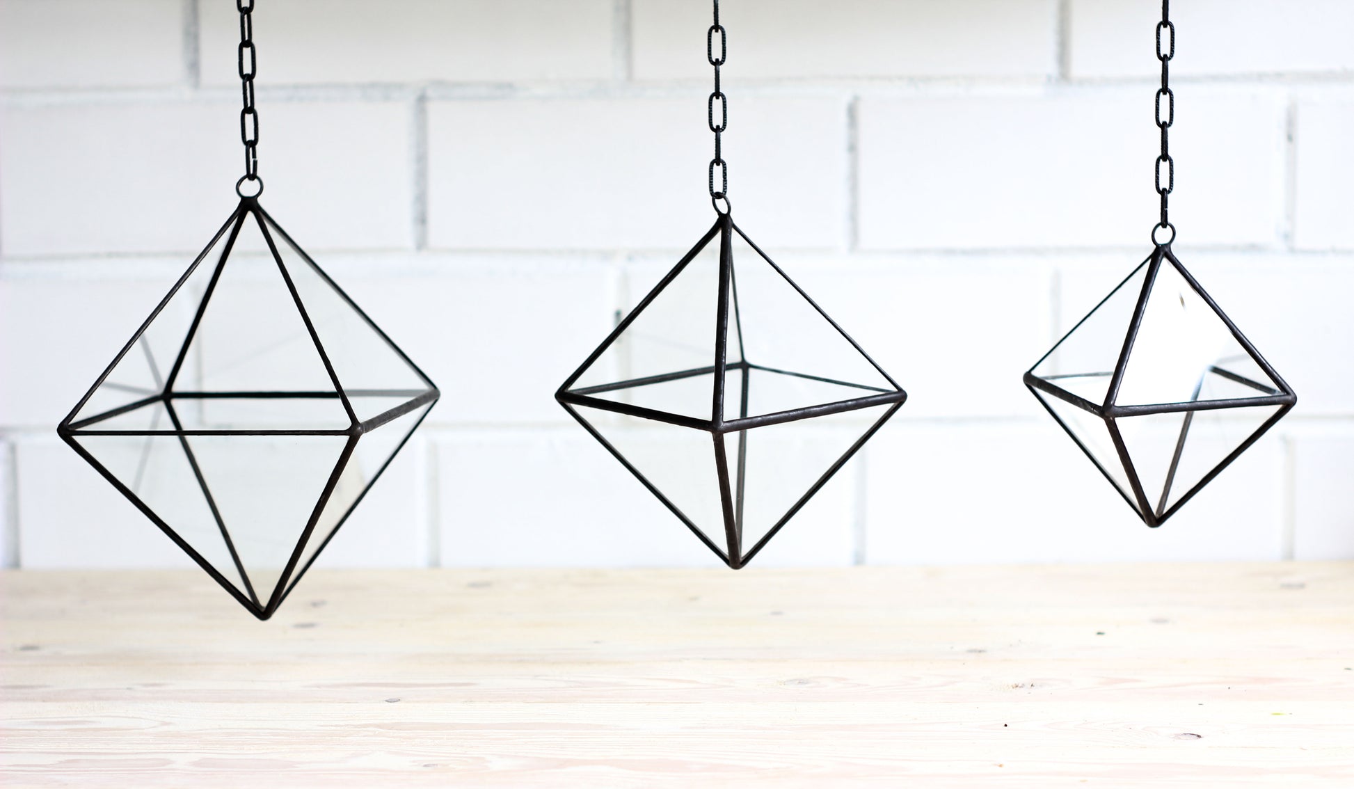 Set of 3 Pendant Glass Octahedrons - 3 sizes: Small, Medium and Large