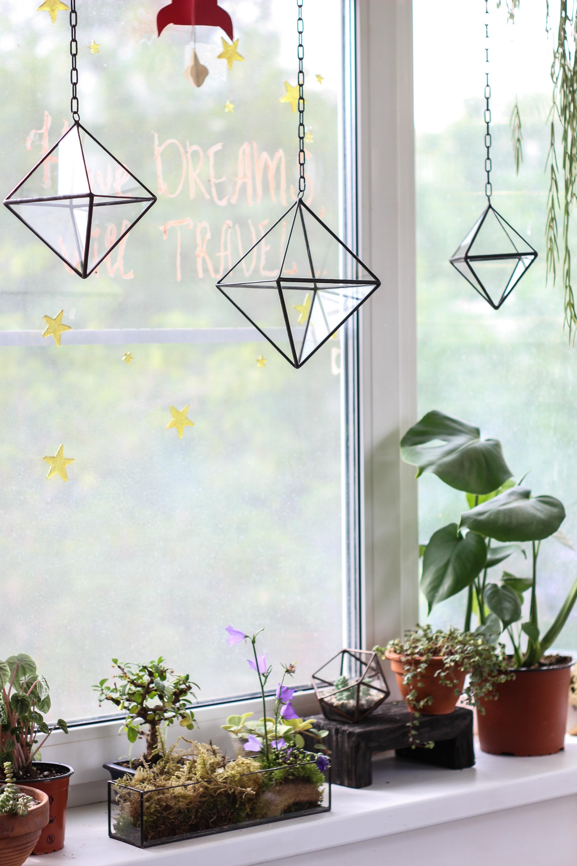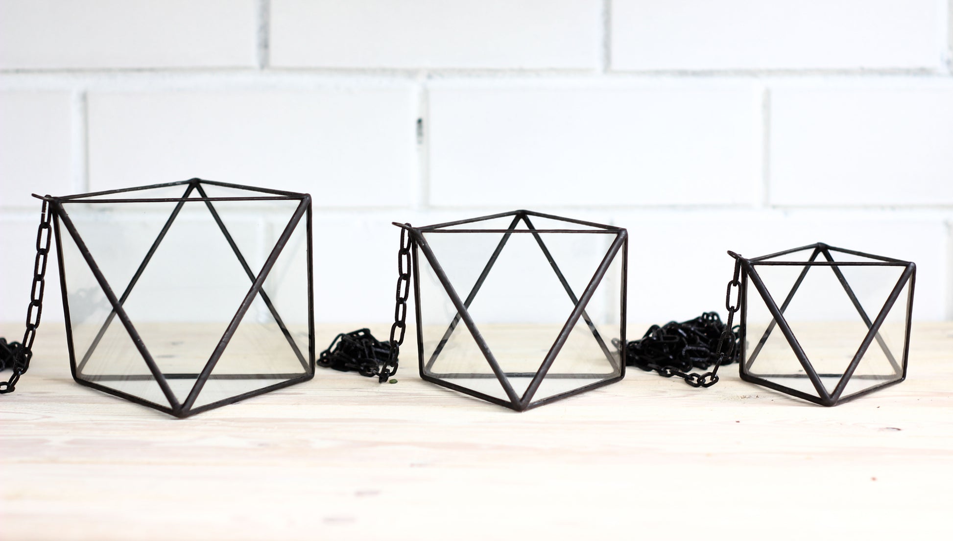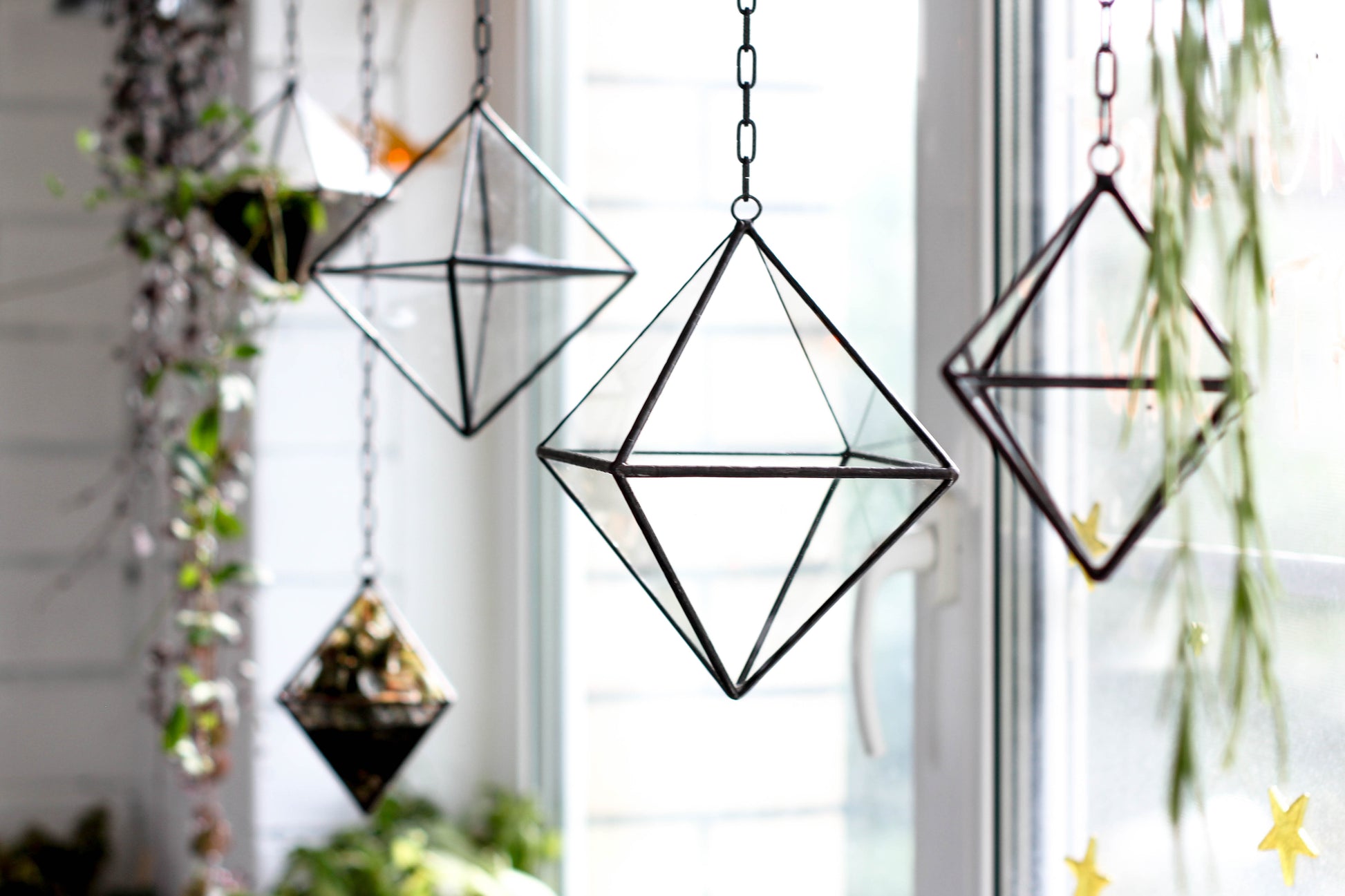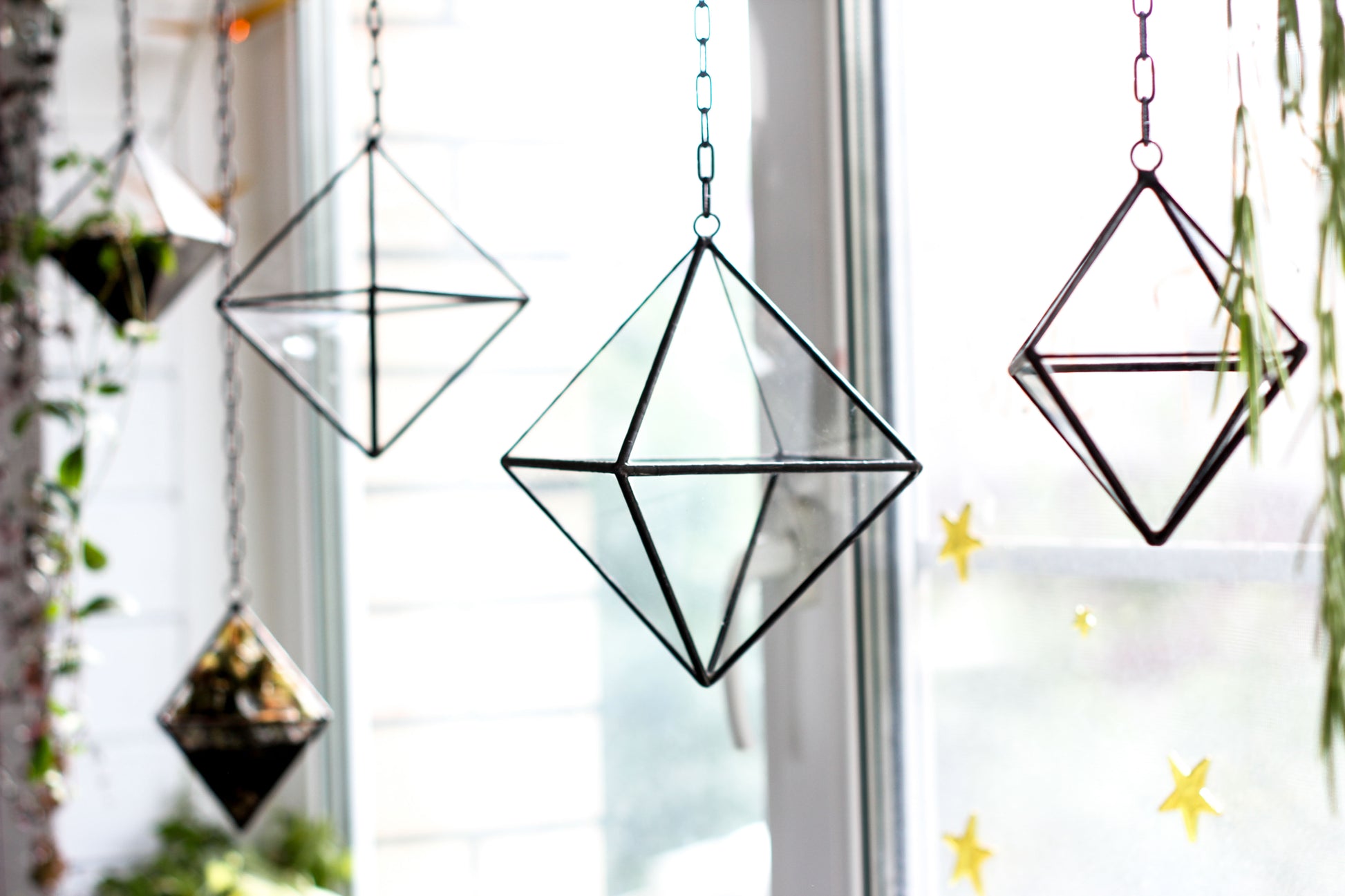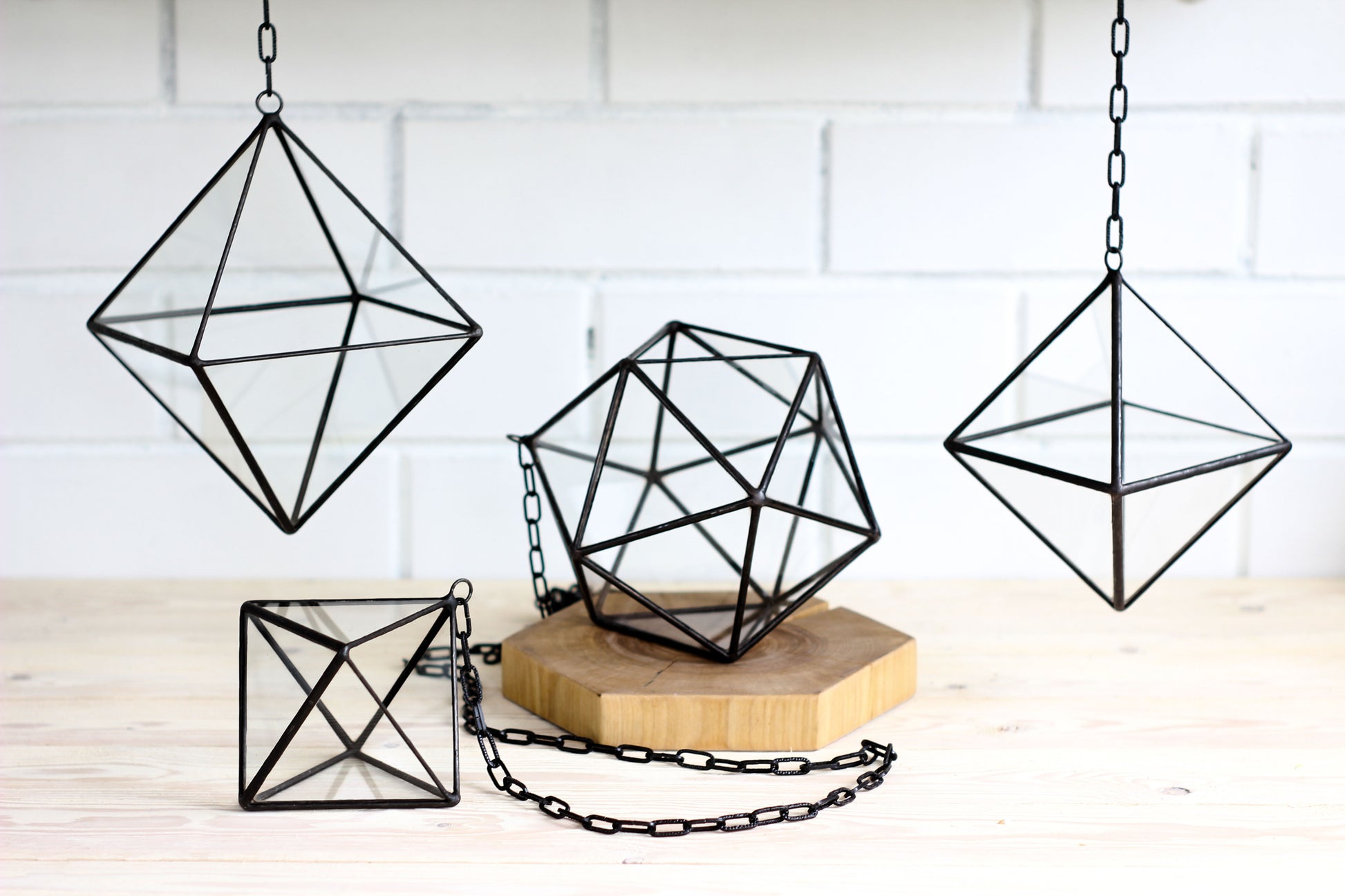 Set of 3 Pendant Glass Octahedrons - 3 sizes: Small, Medium and Large