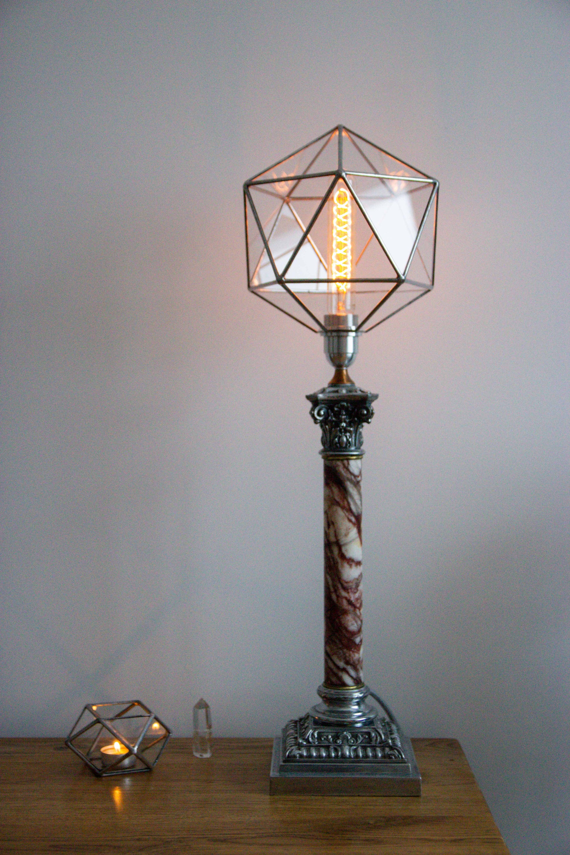 Stereo Russian Table Lamp - early 20th century With Glass Shape Icosahedron