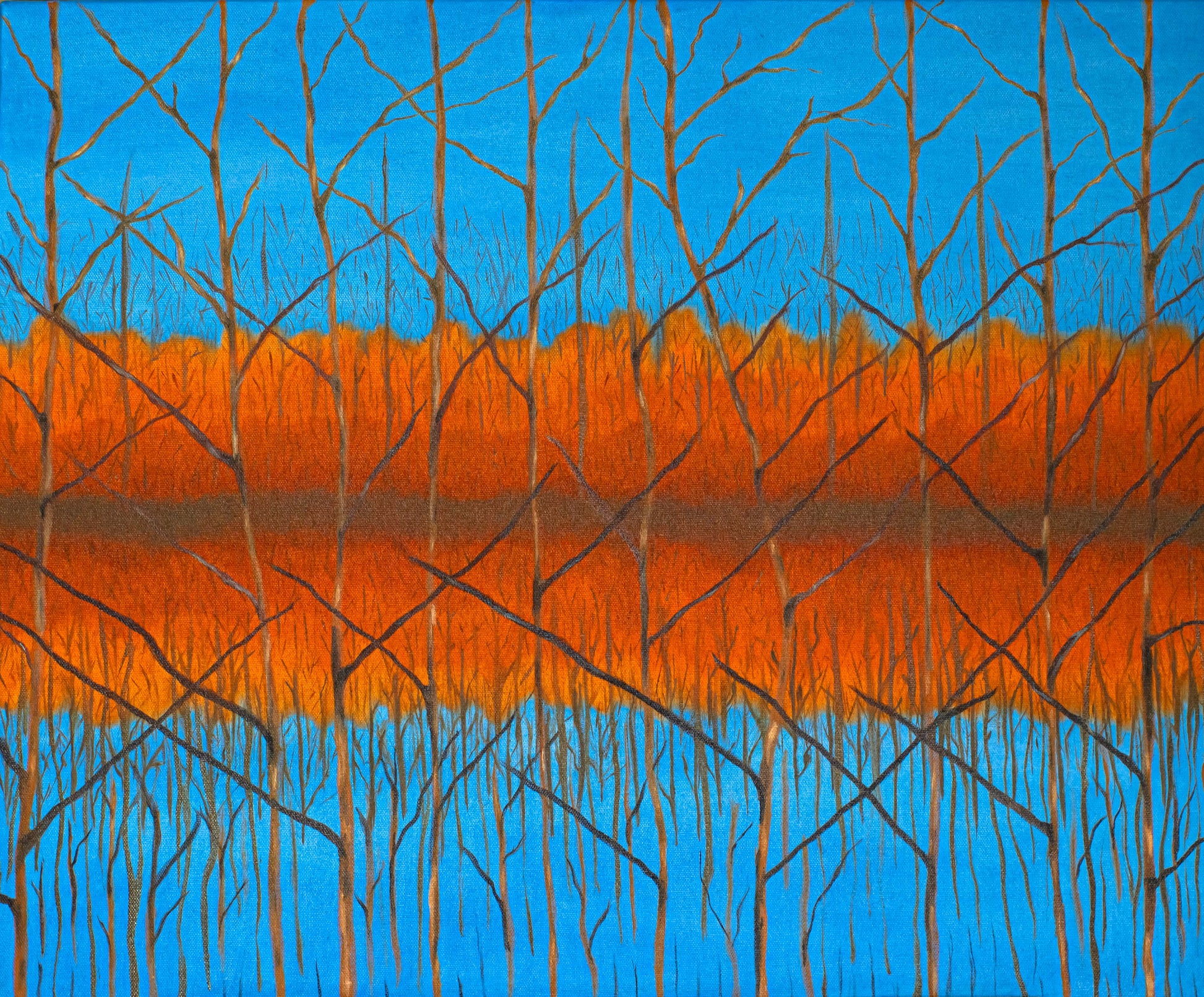 A clear winter day in Russia, a young birch grove without a single leaf gives rise to a psychedelic perspective.