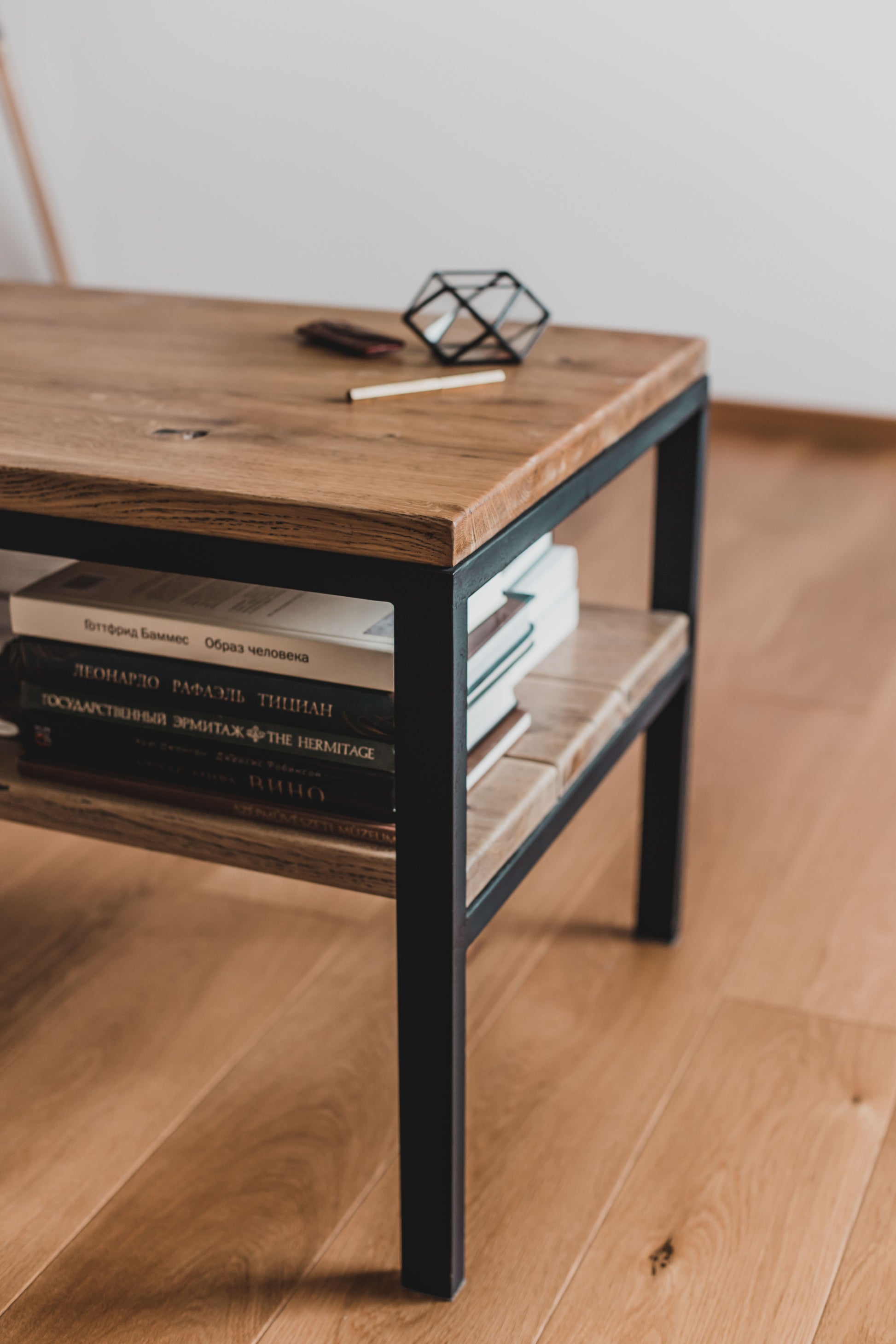 Небольшой журнальный столик с полкой – отличное решение для гостиной, за ним удобно полистать книги или собрать лего-шедевр. Нужная вещь для уютных посиделок с гостями и рюмочка спиртного.