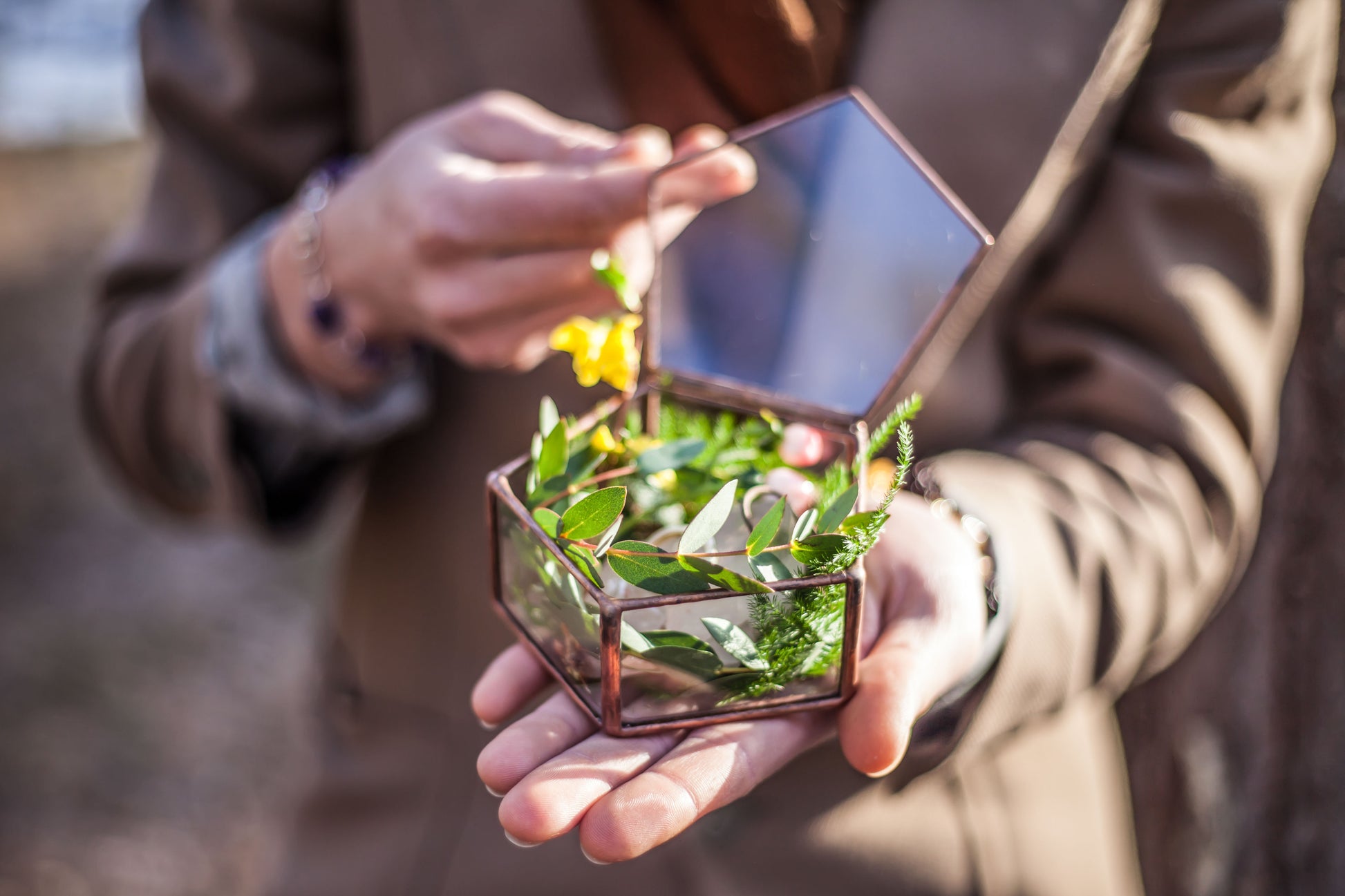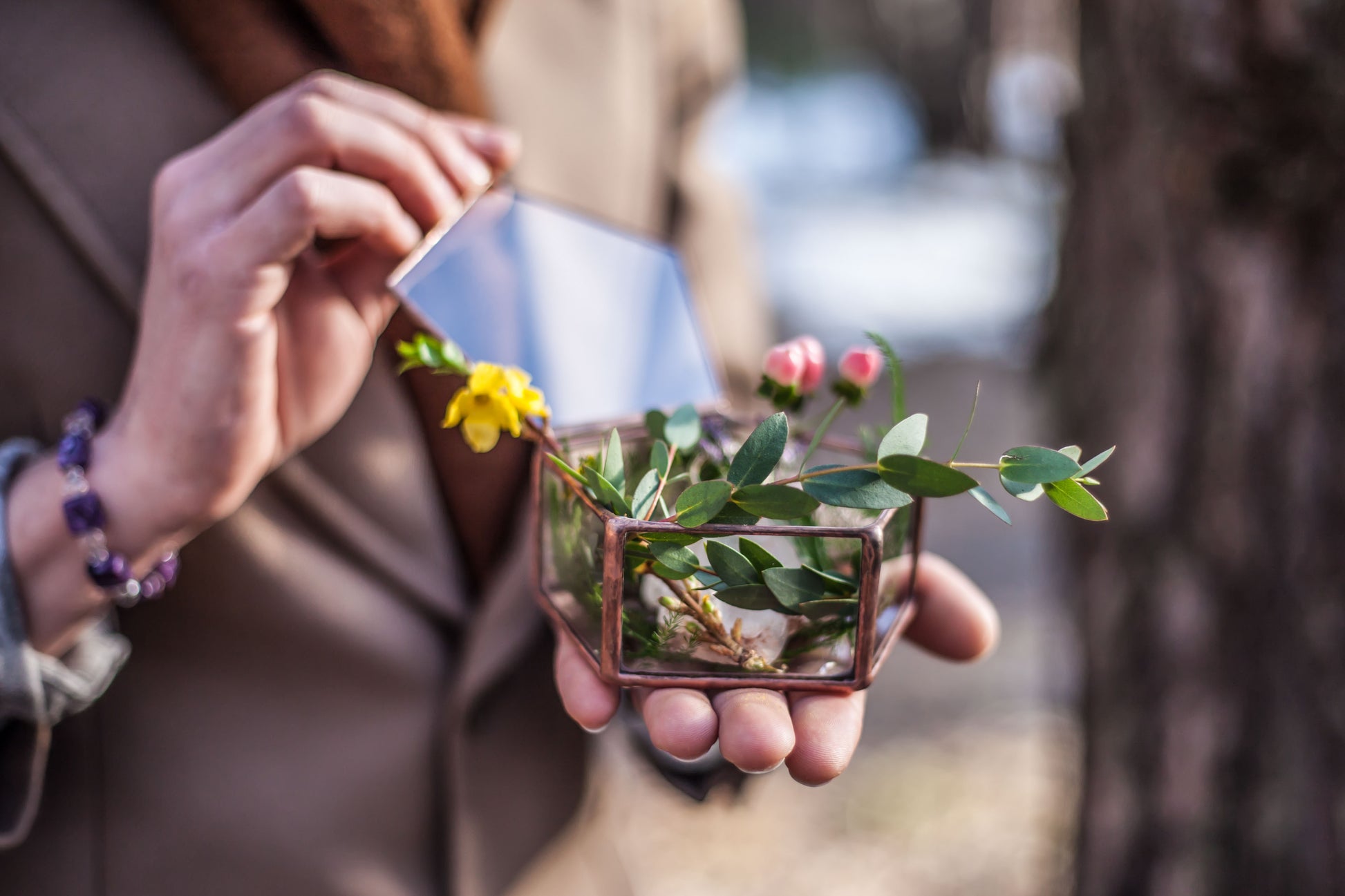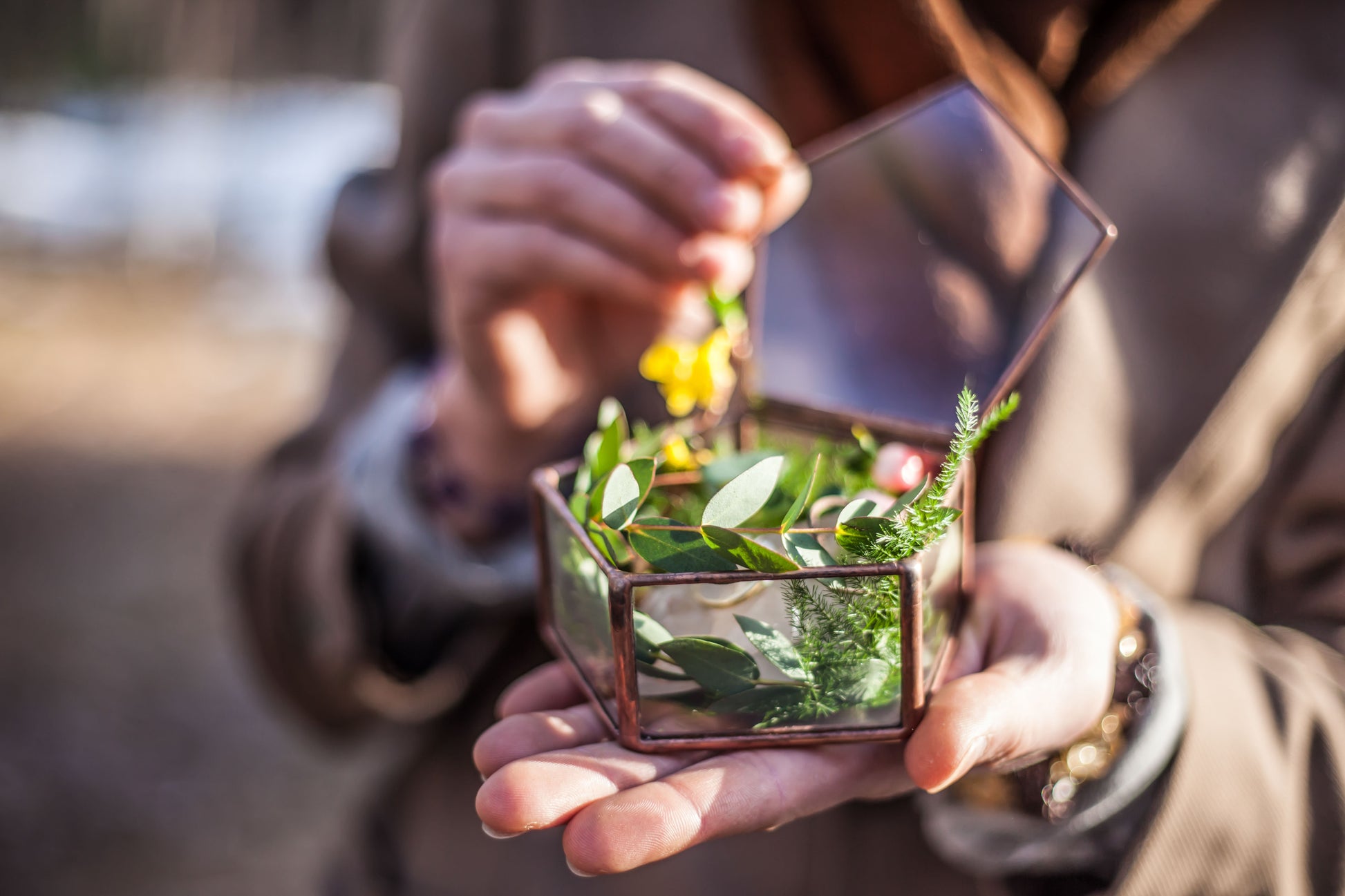 Использование цветов и элементов из дерева, кристаллов и минералов и немного вашей фантазии, и все будет выглядеть роскошно.