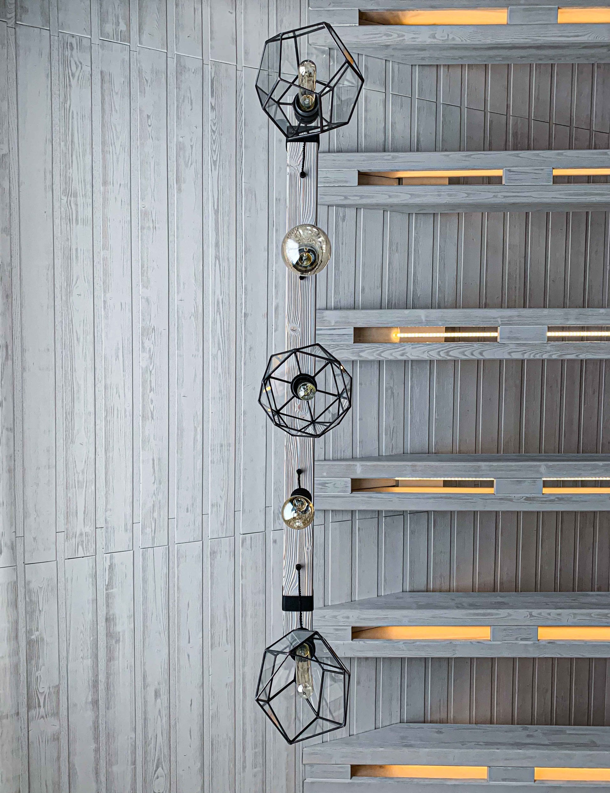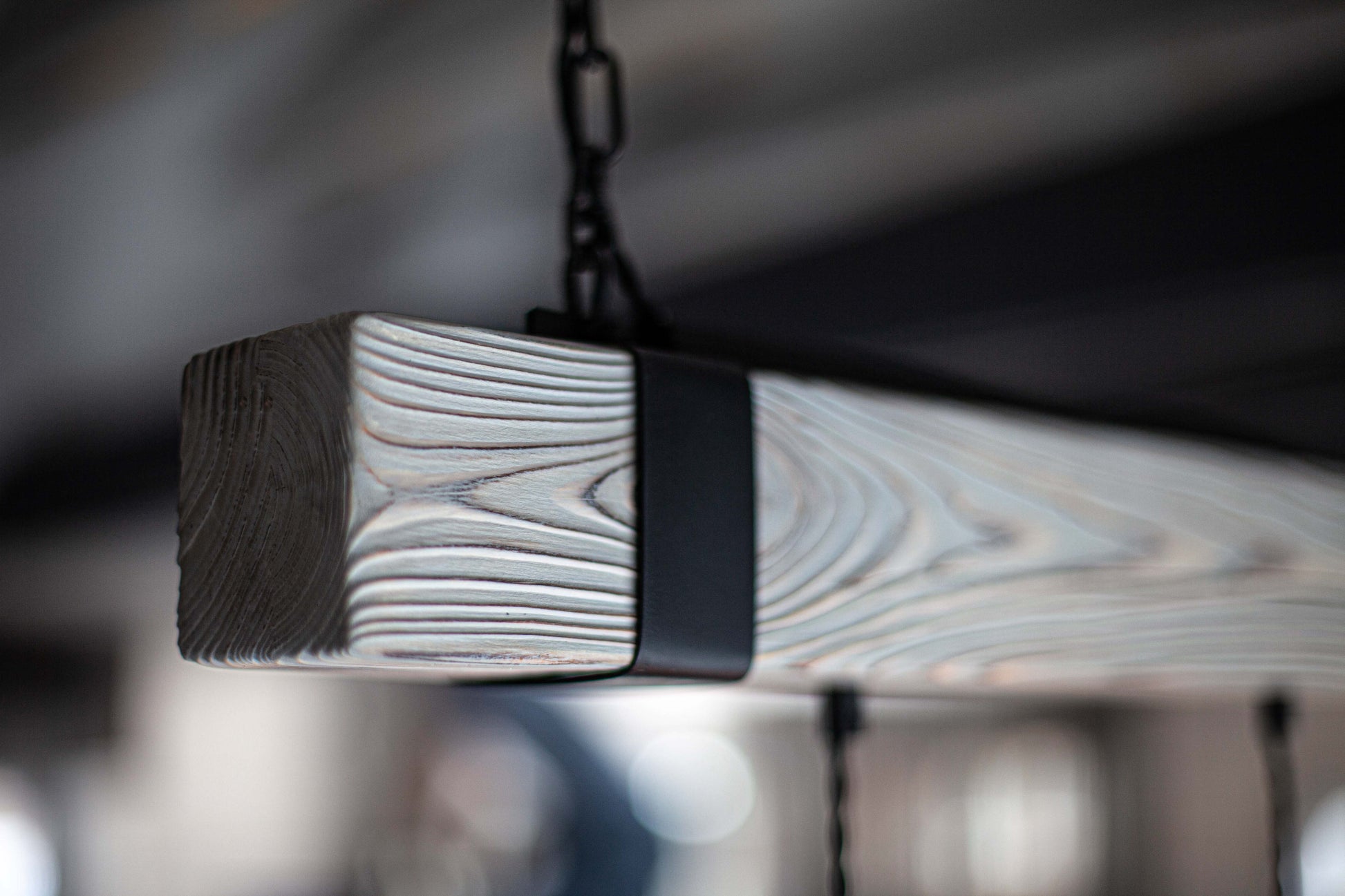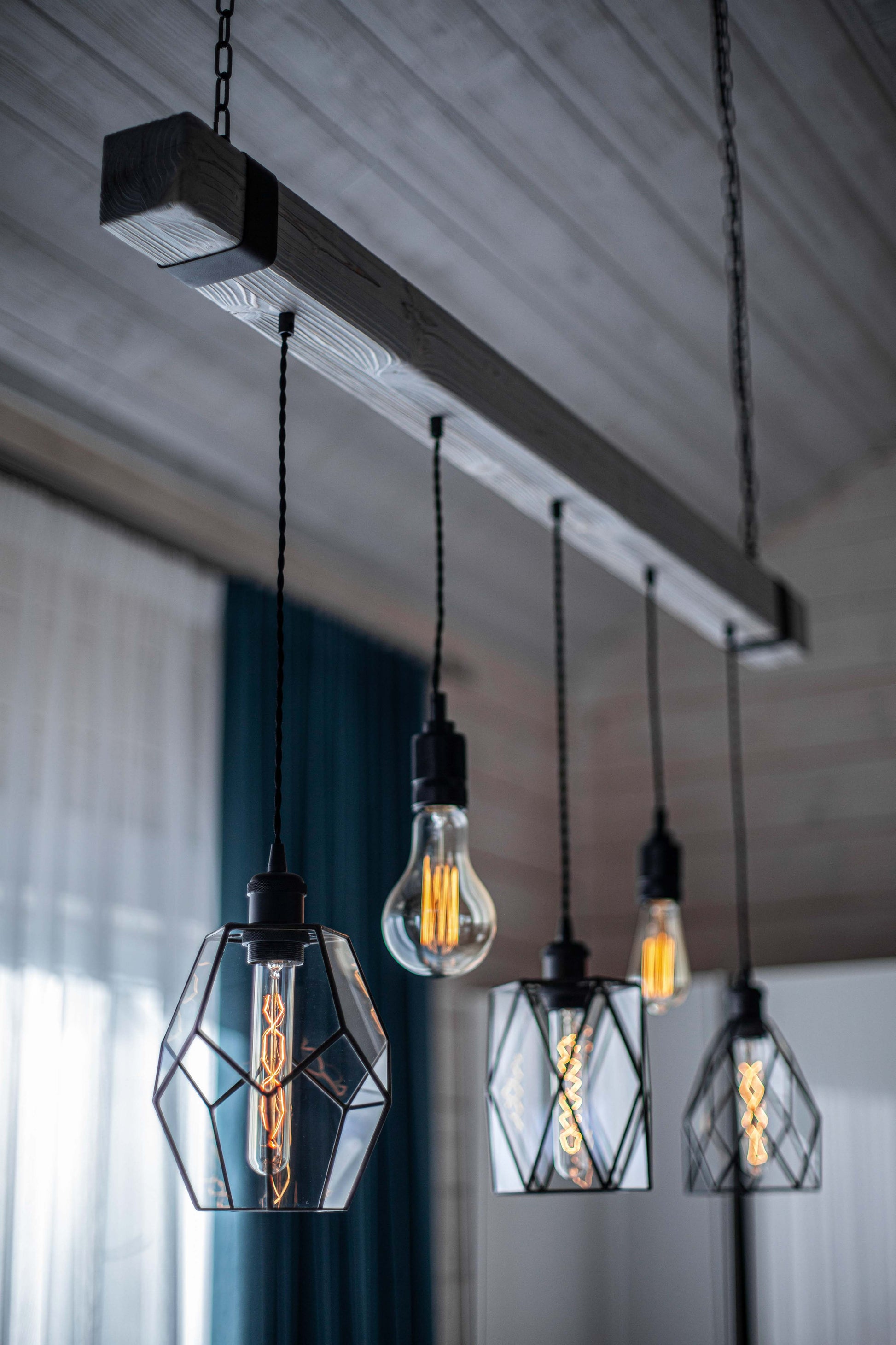 Деревянный подвесной светильник с геометрической стеклянной люстрой