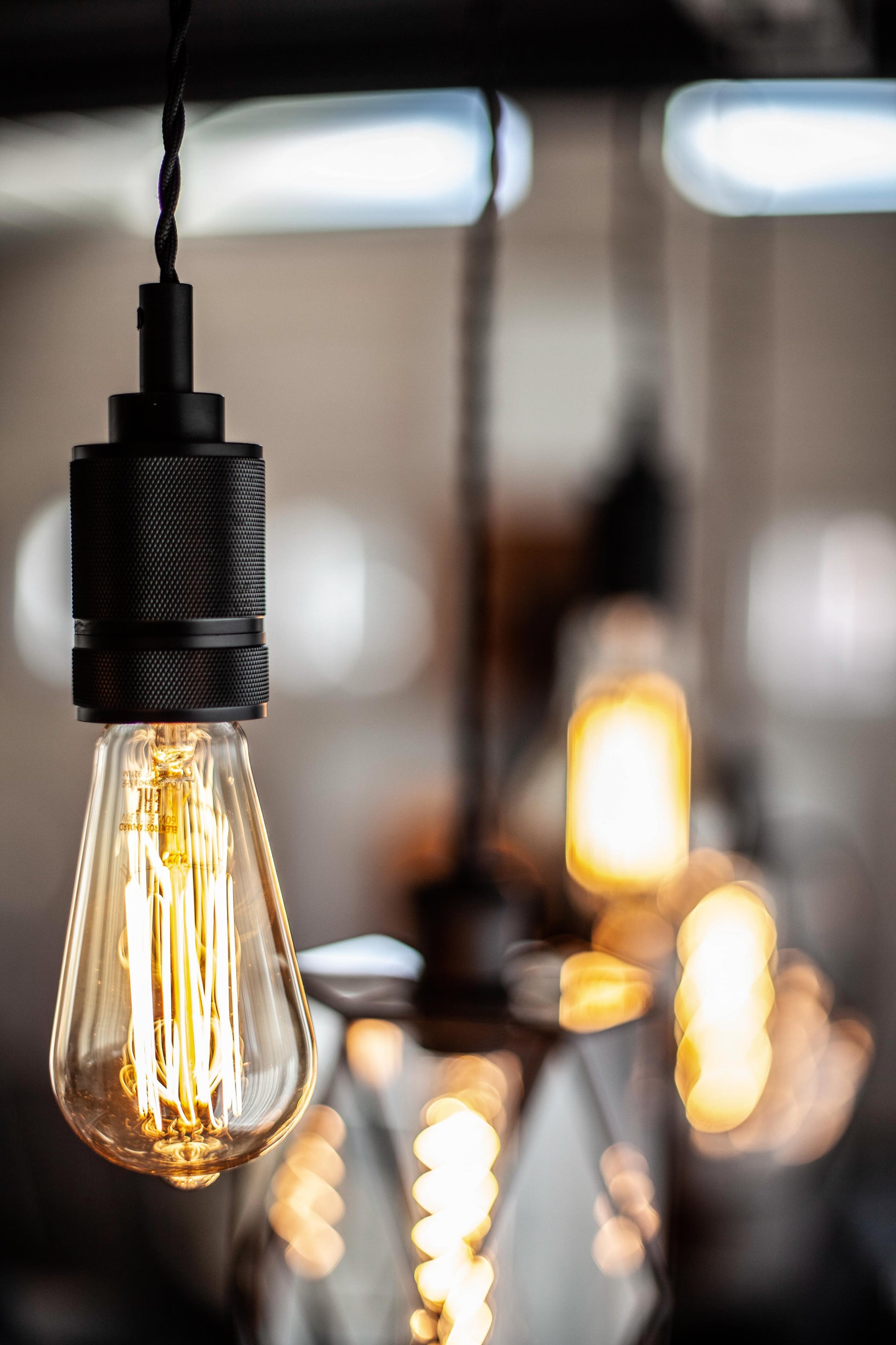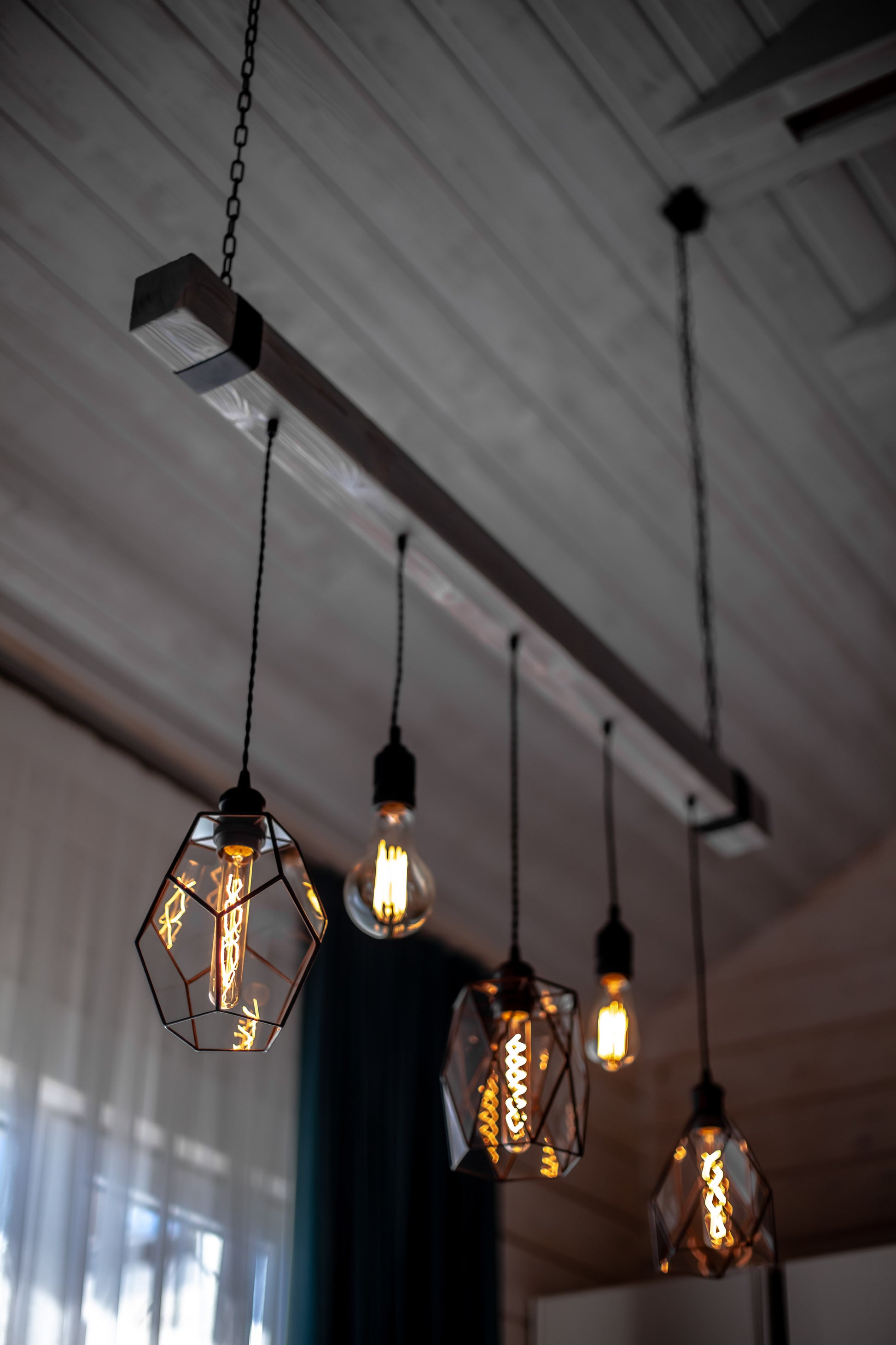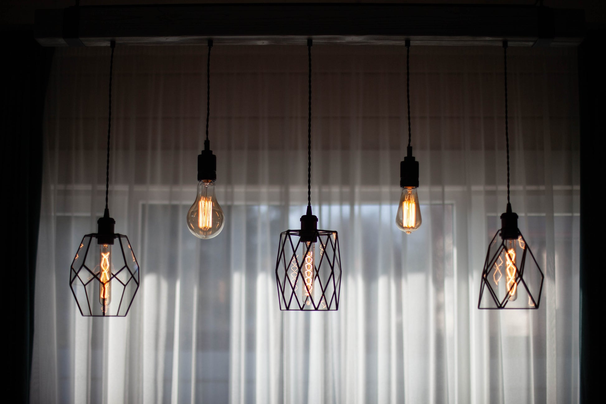 5 лампочек разной формы, три из которых находятся внутри геометрических фигур из нашей коллекции.